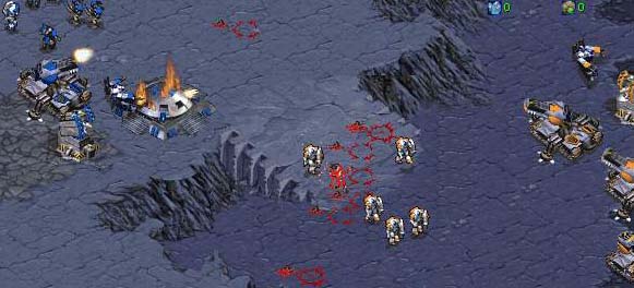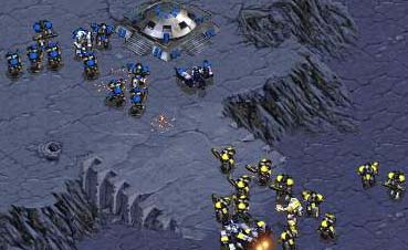 両者はともにメイン種族のTerran、マップ左上の青がSen、右下黄色がOJARU。 [図@]