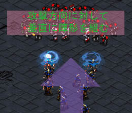 あります。Marinは非常に耐久力が低く、 隊列が乱れたまま戦闘に突入すると隊列の再編を行う 前に前衛が壊滅することが多々あります。 MMの力を十分発揮させるには、乱戦に持ち込ませない 工夫が不可欠です。 理想的な隊列は、Medicが先頭に立ち、敵の攻撃方向 から垂直にMarinが並んでいる状態です。 最低でも、MMが密集した状態で戦闘を行ってください。